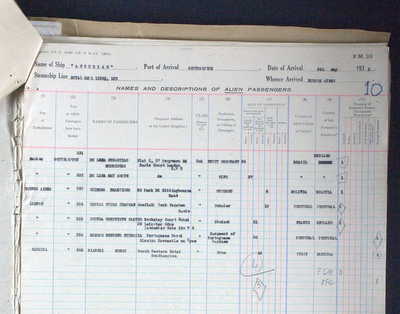 1939 Passenger Immigration Form