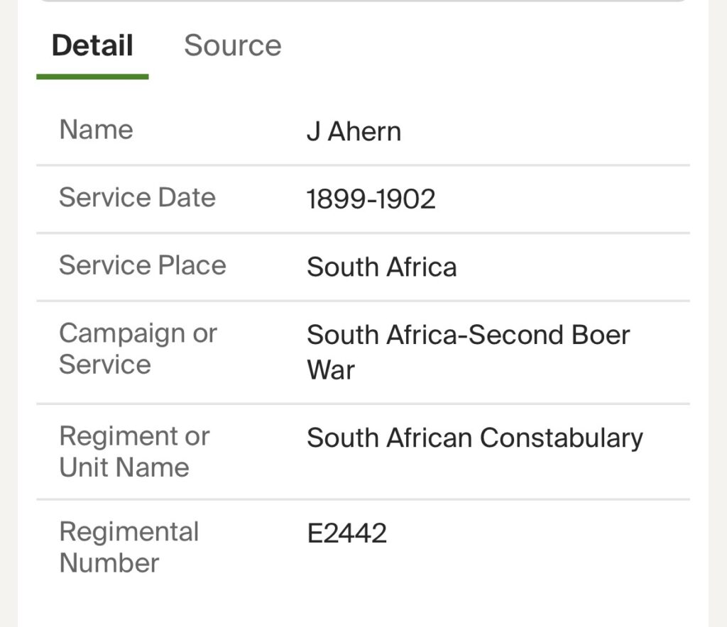 Last but by no means least the Ahern’s have served in the Boer War, and I believe in the War for Independence in Ireland, and during recent times in the Irish Army and the British Army. There are many more relations from all branches of our family tree who have served and continue to serve in the armed forces; they all have stories to tell. Maybe too many to mention here! But hopefully, many of their stories will appear here. Over the years I looked deeper and deeper into their individual histories, the deeper I looked I began to realise that I had slowly but surely turned a passing interest into an obstinate hideous fascination. It was probably when I discovered the full-service history of one of my distant Butler cousins who joined the Buffs militia in 1907 and attended training every year, rose through the ranks to sergeant, fought on the western front, and died in the battle of the Somme in 1916. His every movement, promotion, award, misdemeanour, and pension was listed along with all of his personal details including his parents, siblings, wife and children. All of this personal detail brings home the true horror of war and the terrifying consequences it can bring down on innocent families.